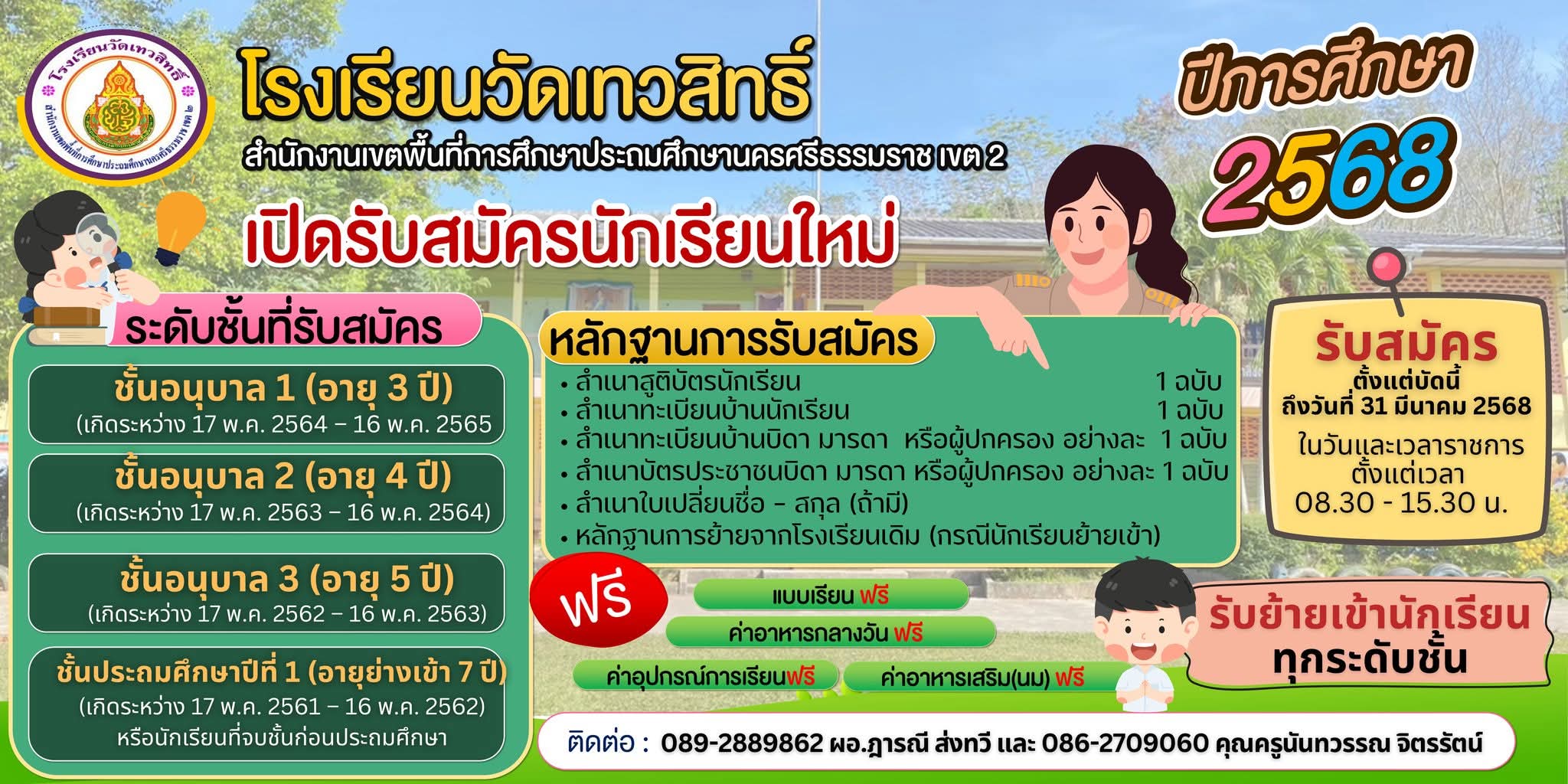 เปิดรับสมัคร นักเรียนใหม่ ปีการศึกษา 2568