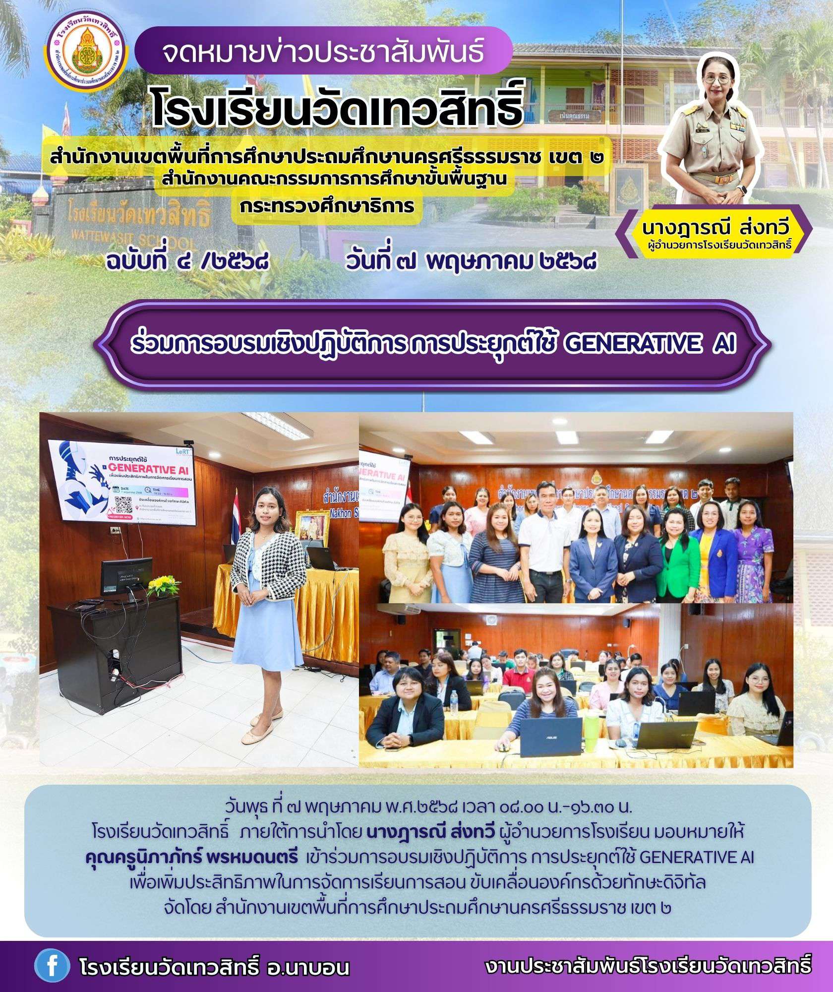 "การประยุกต์ใช้ GENERATIVE AI เพื่อเพิ่มประสิทธิภาพในการจัดการเรียนการสอน และขับเคลื่อนองค์กรด้วยทักษะดิจิทัล"