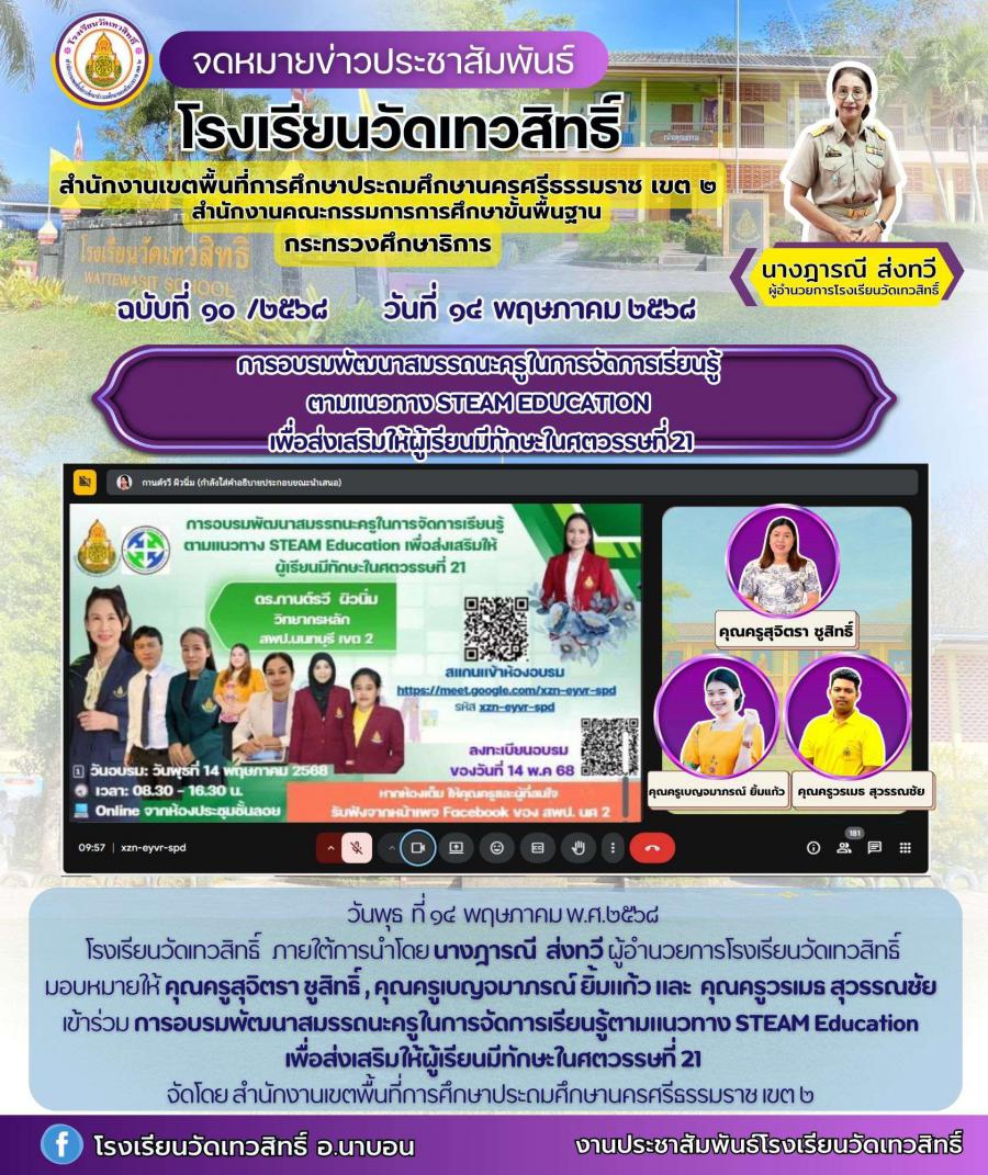 เข้าร่วม การอบรมพัฒนาสมรรถนะครูในการจัดการเรียนรู้ตามแนวทาง STEAM Education